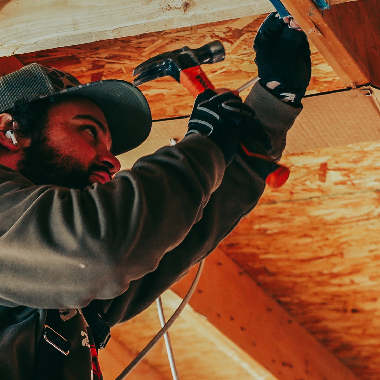 • Padded Palm Protection – Reinforced palm cushioning helps reduce impact and fatigue when handling tools and materials throughout the day.